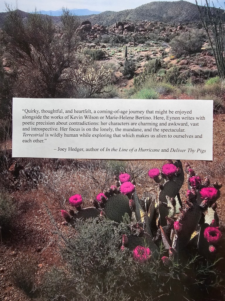 “Quirky, thoughtful, and heartfelt, a coming-of-age journey that might be enjoyed alongside the works of Kevin Wilson or Marie-Helene Bertino. Here, Eynon writes with poetic precision about contradictions: her characters are charming and awkward, vast and introspective. Her focus is on the lonely, the mundane and the spectacular. TERRESTRIAL is wildly human while exploring that which makes us alien to ourselves and each other.” – Joey Hedger, author of In the Line of a Hurricane and Deliver Thy Pigs